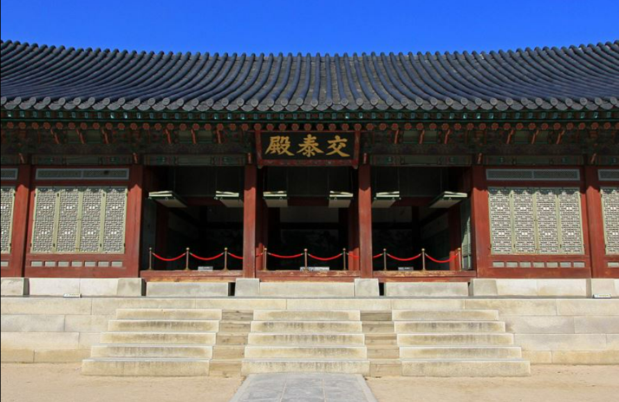 교태전(交泰殿)은 조선시대 왕비의 침전으로, '하늘과 땅, 음과 양이 조화를 이루어 평화를 이룬다'는 의미를 담고 있습니다. 1440년(세종 22년)에 세워졌으며, 일제강점기인 1917년 창덕궁에 큰불이 나자 교태전을 해체하여 대조전을 짓는 데 사용되었습니다. 현재의 건물은 1995년에 복원된 것입니다.